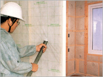 壁や床などは専用シートを貼り、高密度で隙間無く吹き込み施工します。